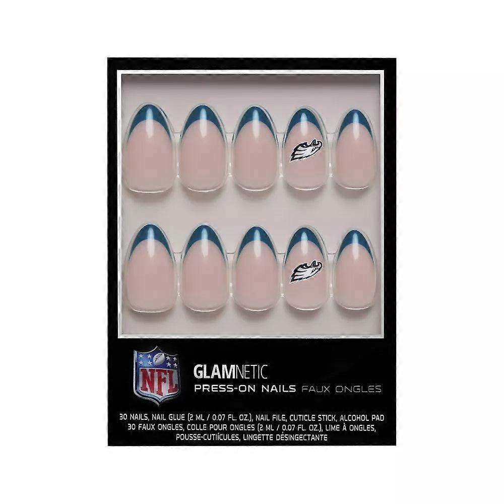 Show your team spirit with these official Detroit Lions press-on nails from the Glamnetic x Fanatics collection. This set provides a sophisticated way to display your loyalty, featuring a modern short almond shape with classic Lions-blue French tips and subtle logo accent nails. Perfect for elevating your style, these are the ultimate Detroit Lions game day nails for the dedicated fan who appreciates a polished, professional look. Complete Manicure Kit: Everything you need for a salon-quality application at home is included. The set contains 30 multi-sized nails, a specialized nail glue, a dual-sided nail file, a cuticle stick, and a cleansing alcohol pad. Durable & Reusable Material: Crafted from high-quality ABS plastic for superior strength and a lightweight feel. Engineered for multiple applications, these are the ideal choice when you want to buy reusable Detroit Lions press-on nails to last through the season. Inclusive Sizing for a Custom Fit: With 30 nails across 15 inclusive sizes, you can easily find the perfect match for each of your natural nails, ensuring a seamless and comfortable fit. Sophisticated Design & Finish: The short almond shape offers a modern, elegant silhouette. Each nail is finished with a high-shine, chip-resistant gloss that complements the semi-transparent base. Official Team Branding: As an officially licensed NFL product, this set features authentic Detroit Lions logos and team colors, allowing you to represent your team with confidence and style. Shape: Short Almond Finish: Glossy Opacity: Semi-Transparent Material: ABS Plastic Kit Contents: 30 nails in 15 sizes, nail glue (0.07 oz), double-sided nail file, cuticle stick, alcohol pad How to Apply: 1. Preparation: Gently file the surface of your natural nails. Push back cuticles using the provided cuticle stick. Cleanse each nail thoroughly with the alcohol pad to remove any oils. 2. Glue Application: Apply a thin, even layer of glue to your entire natural nail. Apply a small dot of glue to the back of the press-on nail. 3. Press and Hold: Align the press-on nail with your cuticle line and apply it at a downward 45-degree angle. Press down firmly and hold for 10 to 20 seconds to ensure a secure bond. Nail Glue Ingredients: Active Ingredient: Ethyl Cyanoacrylate Inactive Ingredients: Polymethyl Methacrylate