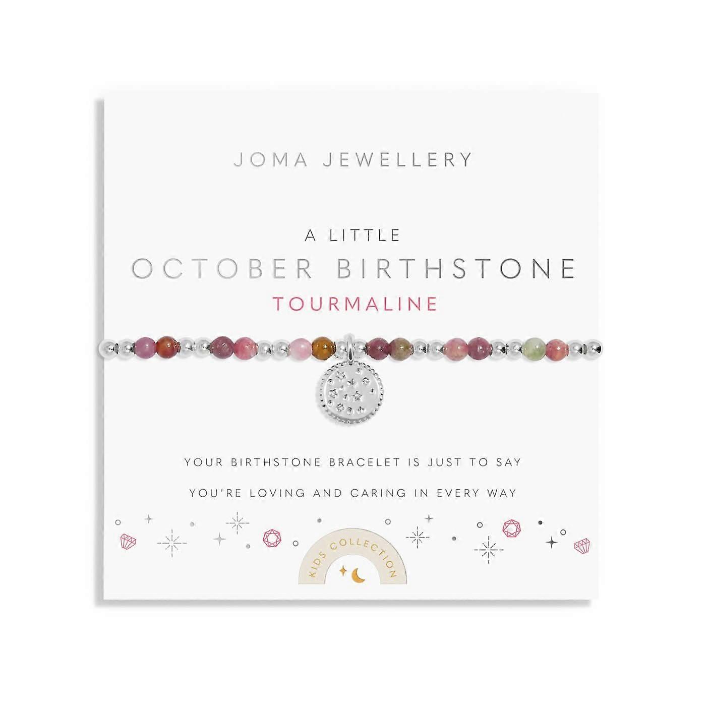 Kids A Little October Birthstone Silver Plated Bracelet C791Introduce your little one to the enchanting world of jewelry with the exquisite Kids A Little October Birthstone Silver Plated Bracelet C791. This beautifully crafted bracelet captures the essence of childhood innocence and the joy of celebrating a special birthday. Designed for smaller wrists, it is the perfect blend of elegance and playfulness.At a size of 15.5cm, this stretch bracelet comfortably fits kids of various ages. The bracelet features stunning tourmaline gemstones that shimmer with vibrant hues of pink, green, and gold, symbolizing love and compassion. Each stone is thoughtfully threaded to create a delightful pattern that adds a touch of whimsy to any outfit.The Kids A Little October Birthstone Bracelet is more than just a piece of jewelry; it's a heartfelt keepsake that comes with a poem straight from the heart, making it an ideal gift for birthdays, special celebrations, or simply to show how much you care. Elegant Design: The silver-plated disc charm adds a touch of sophistication, making this bracelet suitable for both casual and formal occasions. Thoughtful Packaging: Each bracelet comes in free recyclable packaging, reflecting our commitment to sustainability and giving your gift an extra special touch. With a one-year guarantee, this bracelet ensures lasting quality and enduring beauty. It is designed to be one size fits all, accommodating growth while remaining comfortable to wear. Whether it’s for a birthday present, holiday gift, or a treat for your own child, this bracelet will always be cherished.Gift the Kids A Little October Birthstone Silver Plated Bracelet C791 and let your little one sparkle with confidence and grace. Each time they wear it, they will feel your love and thoughtfulness, creating memories that last a lifetime.Acotis Diamonds offers a wide range of meticulously crafted pieces that blend timeless elegance with modern style, perfect for any occasion. Our dedication to quality ensures that every item is not only luxurious but also responsibly made, using ethically sourced materials. Whether you're buying for yourself or a loved one, you can wear your jewellery with pride, knowing it represents both craftsmanship and sustainability.Each piece comes beautifully packaged in recyclable materials, showing a commitment to sustainability alongside luxury. Additionally, we stand by our products with a one-year guarantee, ensuring peace of mind with your purchase.