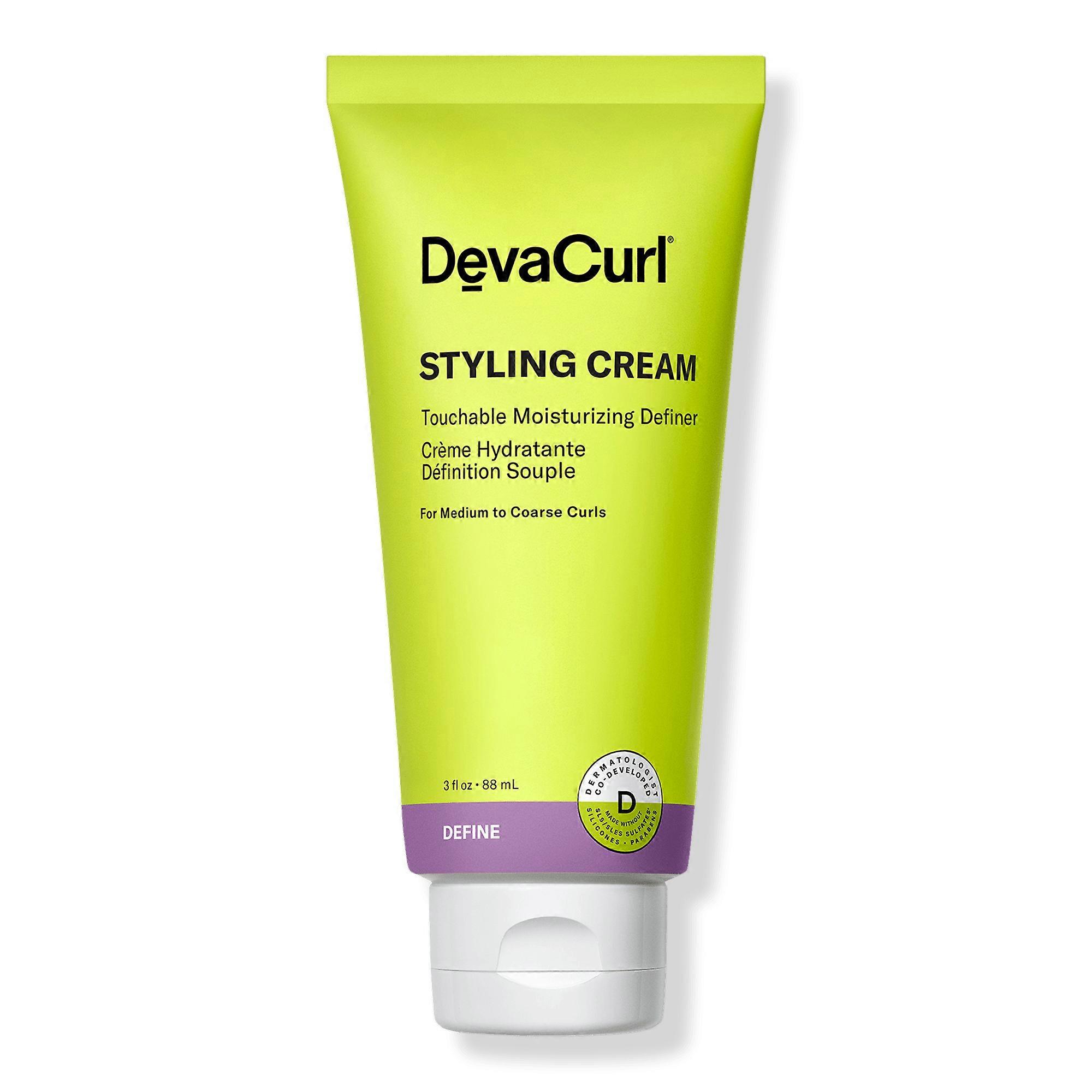 Get totally touchable style with DevaCurl's STYLING CREAM Touchable Moisturizing Definer. This rich cream, with a hydra-definition blend, provides medium to coarse curls with shape, frizz control, and a no-crunch finish. Benefits Gives medium to coarse curls ultimate curl flexibilityMaintains moisture, hydrates & smoothes curlsEncourages curl shape & definitionTames frizzNon-flaking, non-stiff & non-crunchy Features Hydra-definition blend enhances curl body and shape, maintains shine, encourages curl clumping, improves manageability and combability & minimizes flyawaysDermatologist co-developed, backed by science & stylist approvedA lemon and lime Citrus Zest scent that is fresh, bright & energeticBottle made from 50% recycled plasticsGluten-free, cruelty-free & vegan Formulated Without SLS/SLES sulfatesSiliconesParabens Inactive Ingredients: Water, Dipropylene Glycol, Butylene Glycol, 1,2-Hexanediol, Glycerin, Melaleuca Alternifolia (Tea Tree) Leaf Oil, Calendula Officinalis Flower Extract*+, Avena Sativa (Oat) Kernel Extract*, Nepeta Cataria Extract*, Rubus Idaeus (Raspberry) Leaf Extract*, Baptisia Tinctoria Root Extract*, Stellaria Media (Chickweed) Extract*, Arctium Lappa Root Extract+, Echinacea Angustifolia Extract+, Rosmarinus Officinalis (Rosemary) Leaf Extract+, Lavandula Angustifolia (Lavender) Flower Extract+, Lactobacillus/Soybean Ferment Extract, Saccharomyces/Potato Extract Ferment Filtrate, Saccharomyces/Barley Seed Ferment Filtrate, Centella Asiatica Extract, Glycyrrhiza Glabra (Licorice) Root Extract, Camellia Sinensis Leaf Extract, Scutellaria Baicalensis Root Extract, Polygonum Cuspidatum Root Extract, Chamomilla Recutita (Matricaria) Flower Extract, Glycine Soja (Soybean) Sprout Extract, Magnolia Kobus Bark Extract, Sodium Hyaluronate, Panthenol, Alanyl Glutamine, PEG-40 Hydrogenated Castor Oil, Octyldodeceth-16, Citric Acid, Sodium Citrate, Trisodium EDTA, Sodium Polyacrylate, Citrus Aurantium Bergamia (Bergamot) Fruit Oil, Eucalyptus Globulus Leaf Oil, Rosmarinus Officinalis (Rosemary) Leaf Oil, Fragrance**, Citral, Citronellol, Limonene, Geraniol, Linalool. Suggested Use: 1. Distribute through soaking wet curls. 2. Scrunch upward for definition or smooth downward to tame. 3. Do not rinse. 4. Style as usual. If you have dry, fine curls, Wave Maker, a lightweight cream with a hydra-definition blend is recommended. If you have dry, coarse curls, DevaCurl recommends SuperCream, a multi-tasking ultra-rich cream with a hydra-definition blend. Keep out of the reach of children. In the event of contact with eyes, rinse thoroughly with water. UPC: 000002586528 Weight: 0.69 lbs