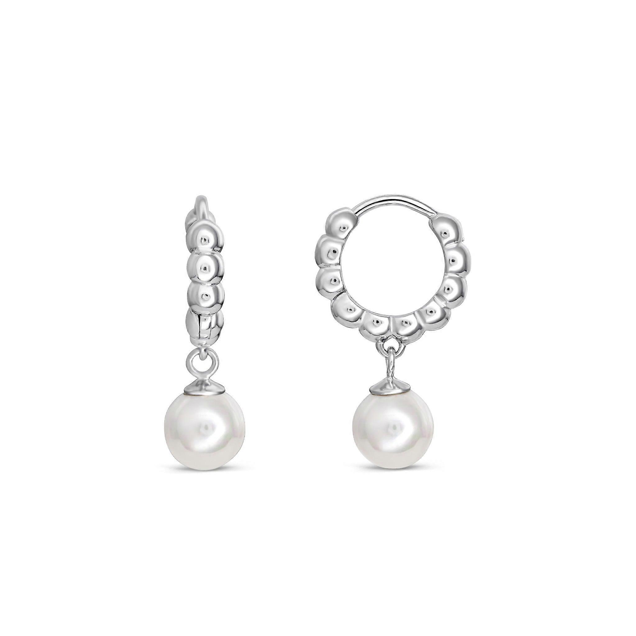 Dew 6mm Shell Pearl Beaded Hinged Hoop Earrings 53116SHP