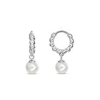 Dew 6mm Shell Pearl Beaded Hinged Hoop Earrings 53116SHP