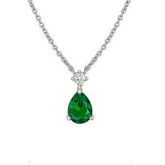 Dew Emerald (syn) and Zirconia Teardrop 18" Necklace 92931SEZ
