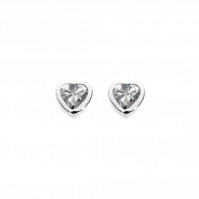 Dew Sterling Silver Dinky Cubic Zirconia Heart Stud Earrings 3035CZ