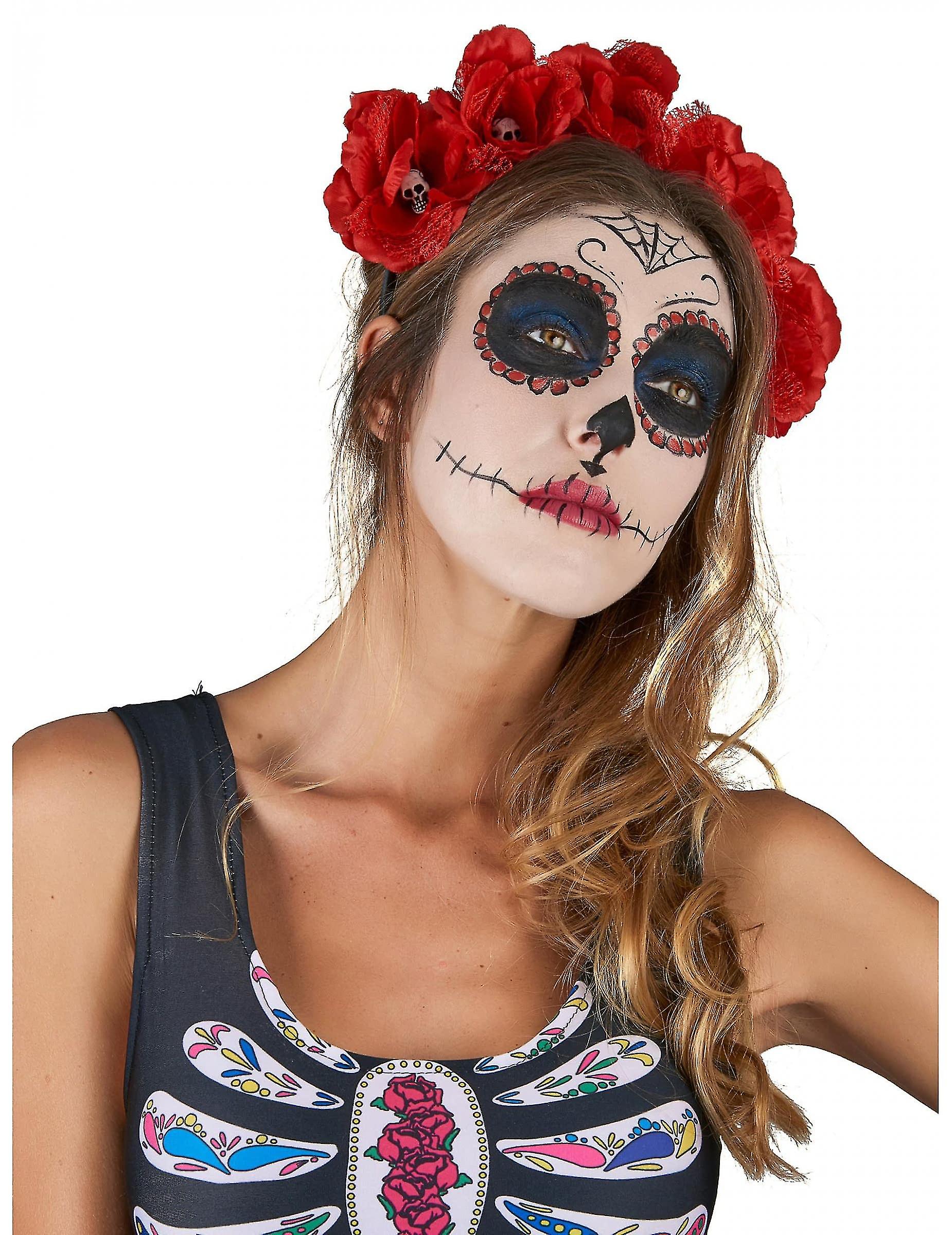 Serre-tête fleurs rouge Dia De Los Muertos adulte