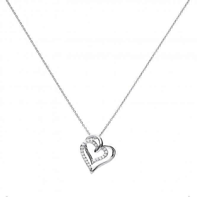 Diamonfire Silver White Zirconia Entwined Hearts Necklace N4240