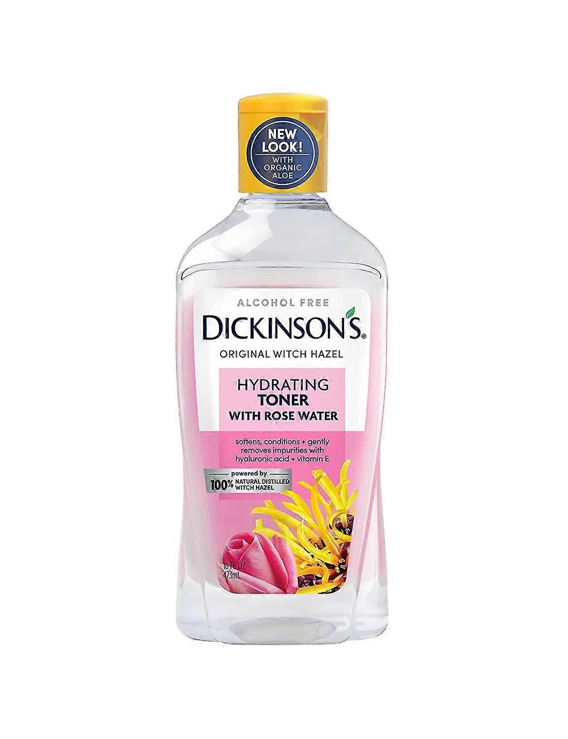 Dickinson's Enhanced Witch Hazel Hydrating Toner is an alcohol-free formula that gently cleanses, tones, and refreshes skin. This product helps maintain skin's natural balance while removing impurities and reconditioning without causing tightness or stinging. The result is soft, smooth, and healthy-looking skin. Moisturizes skin and refines pores Hydrates and nourishes with Hyaluronic Acid and Vitamin E Gently removes traces of make-up and impurities Leaves skin soft and supple Powered by the cleansing properties of All Natural Witch Hazel Extract Reveals smoother, brighter complexion Free from soaps, dyes, and sulfates Ingredients Water (Aqua), Hamamelis Virginiana (Witch Hazel) Extract, Glycerin, Propanediol, Sodium Hyaluronate, Aloe Barbadensis Leaf Juice, Tocopheryl Acetate (Vitamin E), Panthenol, Sodium PCA, Allantoin, Sodium Citrate, Citric Acid, Phenoxyethanol, Ethylhexylglycerin Suggested Use Cleanse face thoroughly Apply toner to a cotton pad Gently sweep over face and neck Use morning and evening or as needed Follow with your favorite moisturizer