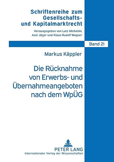 Die Ruecknahme von Erwerbs und Uebernahmeangeboten nach dem WpUeG by Markus Kappler