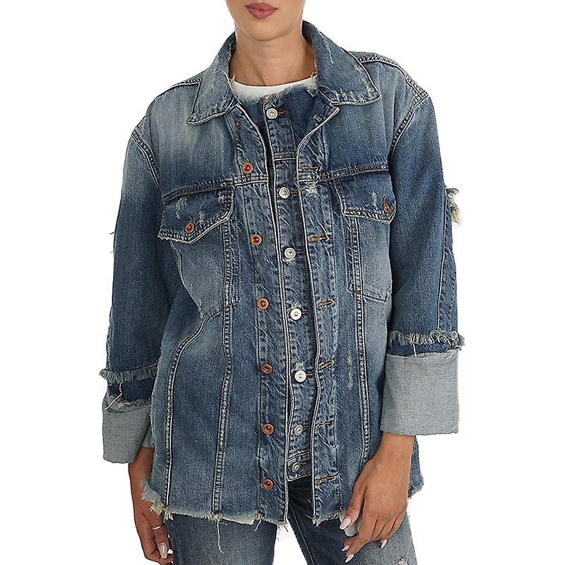 Diesel - is an Italian fashion label, founded in 1978. Diesel is an innovative fashion company, producing a wide-ranging collection of jeans, clothing, shoes, and accessories for men's, women's and kids. The clothing line has two different brands: Diesel and Diesel Black Gold. The brand is primarily known for its trademark denim and high-quality casual wear that puts an edgy twist on luxury fashion with its pioneering new styles and creative design methods.   Women's Denim Jacket Classic Collar Long Sleeves A front button fastening, two chest pockets,  Exaggerated ripped details and a faded effect. 100% Cotton Distressed Made in Albania Closure: Button Colour Name: Blue Denim Relax Fit Material: Cotton Neckline: Collared Neck Occasion: Casual Sleeve Type: Long Sleeve Size: S   Measurements: S: Pit to Pit: 23.5, Full Lenth: 29, Shoulder: 19.5, Full Sleeve:21