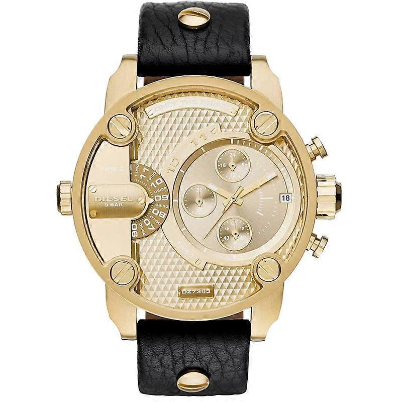 Diesel Dz7363 Men's Watch - Gold Dial, Black Leather Strap