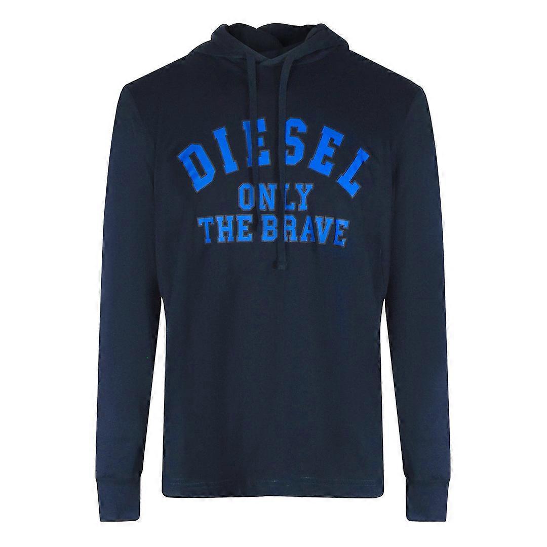 Diesel Only The Brave Logo Navy Blue Hooded T-Shirt