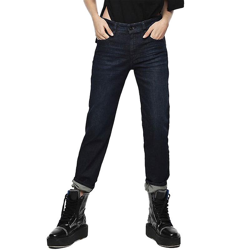 Diesel - is an Italian fashion label, founded in 1978. Diesel is an innovative fashion company, producing a wide-ranging collection of jeans, clothing, shoes, and accessories for men's, women's and kids. The clothing line has two different brands: Diesel and Diesel Black Gold. The brand is primarily known for its trademark denim and high-quality casual wear that puts an edgy twist on luxury fashion with its pioneering new styles and creative design methods.   Women's Denim Jeans Style Name: D-RIFTY  Style Code: 00SMN0-080AK Made in Morocco 99% Cotton,  1% Elastane Application: 100% Cowhide Leather  Slim Low Waist Fit Superior Quality Italian Design Faded Stretch 5 Pockets  Zip Closer Colour: Dark Blue