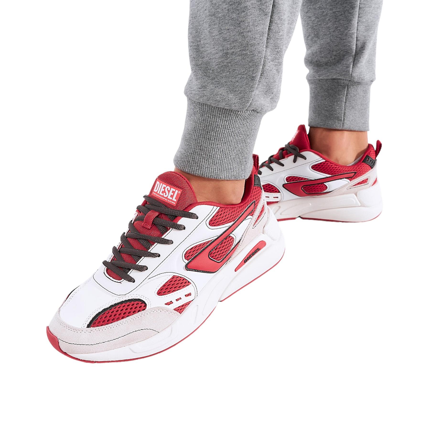 Diesel Men's Trainers Model Name: S-Serendipity Sport Model Number: Y02868 P4481 H1154 Upper: Textile Lining: Textile Sole Material: Rubber Made in Vietnam  Lace Up Lightweight Color: White / Red Size: EU 40.5, EU 41   Size Guide EU UK USA 40.5 7 8 41 7.5 8.5