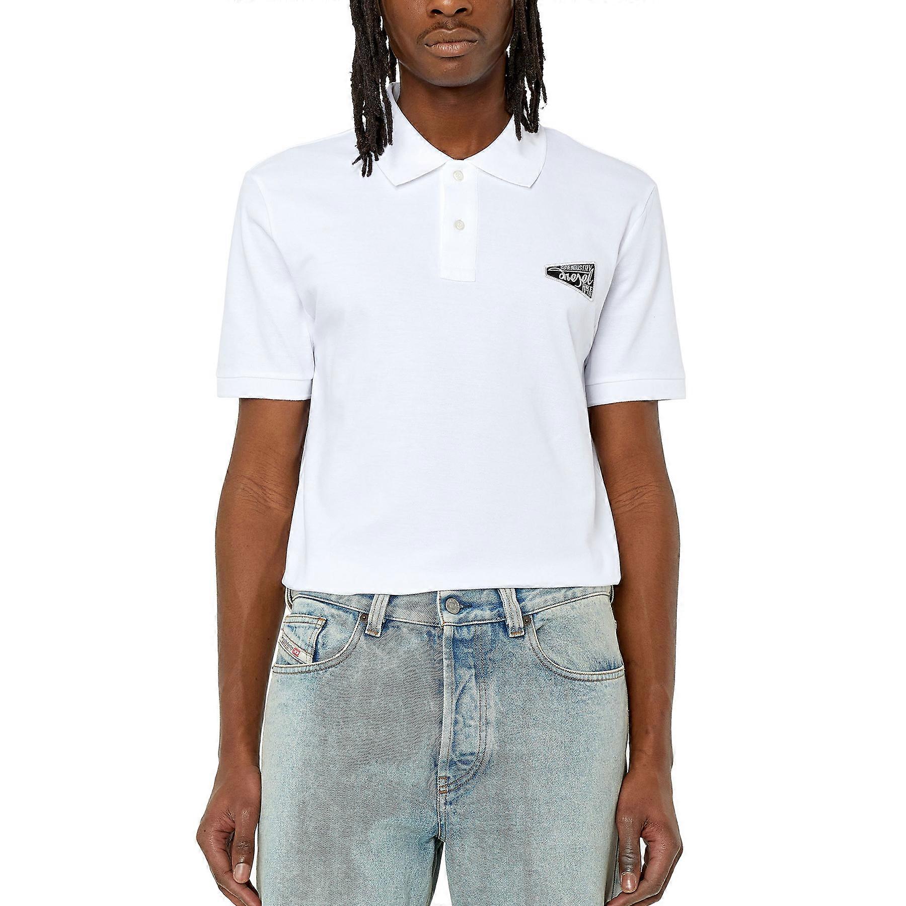 Diesel Men’s Polo Shirt Style Name: T- SMITH- G3 Style Code: A10632 ART.OBAWH 100% Cotton  Made In Bangladesh Regular Fit Diesel "Brave Industry" logo patch on the chest Button Placket, Knitted Collar With Rectangular Logo Patch On The Chest Short Sleeve Two Button Closure Casual Wear, Comfort Fabrics Authenticity Guaranteed Colour: White