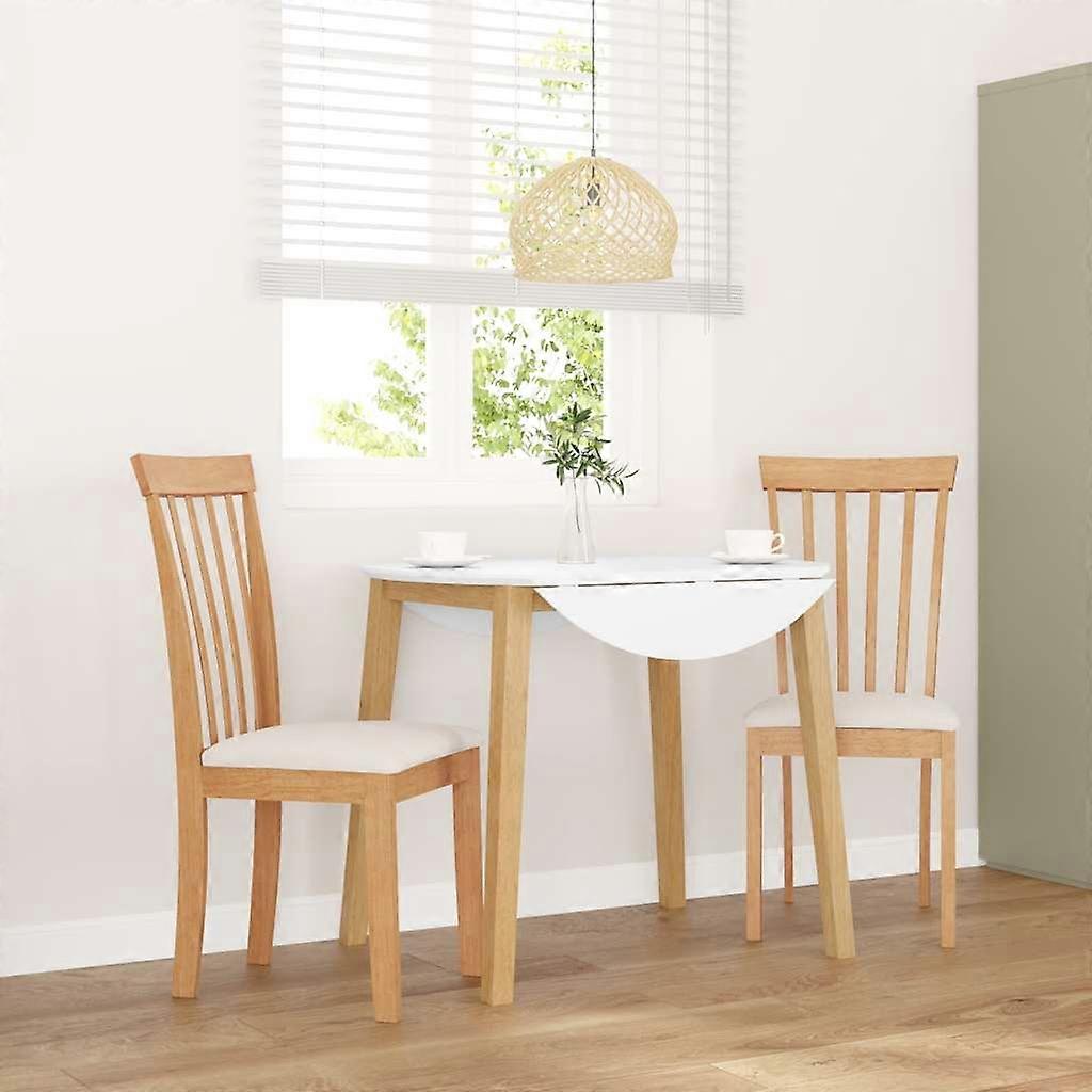 Diese Esszimmerstühle zeichnen sich durch ein zeitloses, ergonomisches Design aus, das außergewöhnlichen Komfort und Halt bietet und somit eine perfekte Ergänzung für jeden Raum in deinem Zuhause darstellt. Robustes und stabiles Material: Gummibaum-Massivholz ist ein wunderschönes Naturmaterial. Gummibaumholz besitzt eine dichte Maserung und ist stoßfest und langlebig.Bequemes Sitzerlebnis: Die mitgelieferten Kissen sorgen für maximalen Sitzkomfort, der dir hilft, dich nach einem anstrengenden Tag zu entspannen.Ergonomisches Design: Diese Stühle verfügen über bequeme Rückenlehnen, die den Rücken auch bei längerem Sitzen entlasten.Breite Anwendungen: Ob du deine Mahlzeit im Esszimmer genießt oder im Wohnzimmer liest und entspannst, diese Esszimmerstühle können deine Bedürfnisse perfekt erfüllen. Farbe: Natur und CremeMaterial: Massives Gummibaumholz, Stoff (100 % Polyester)Füllung: SchaumstoffAbmessungen: 43 x 50 x 94 cm (B x T x H)Sitzgröße: 40 x 39 cm (B x T)Sitzhöhe vom Boden: 44 cmMaximale Tragfähigkeit (pro Sitz): 110 kgZusammenbau erforderlich: JaLieferung umfasst:2 x Esszimmerstuhl