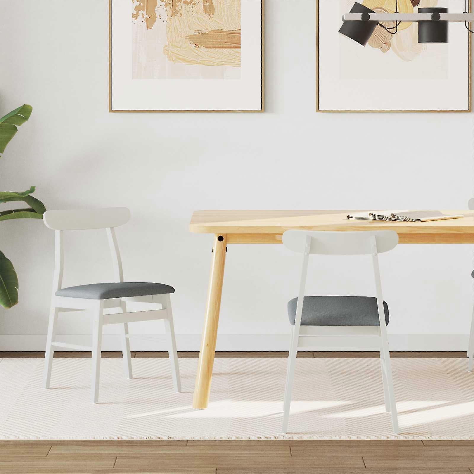 Esszimmerstuhl 2 pcs Weiß und Grau Massives Gummiholz