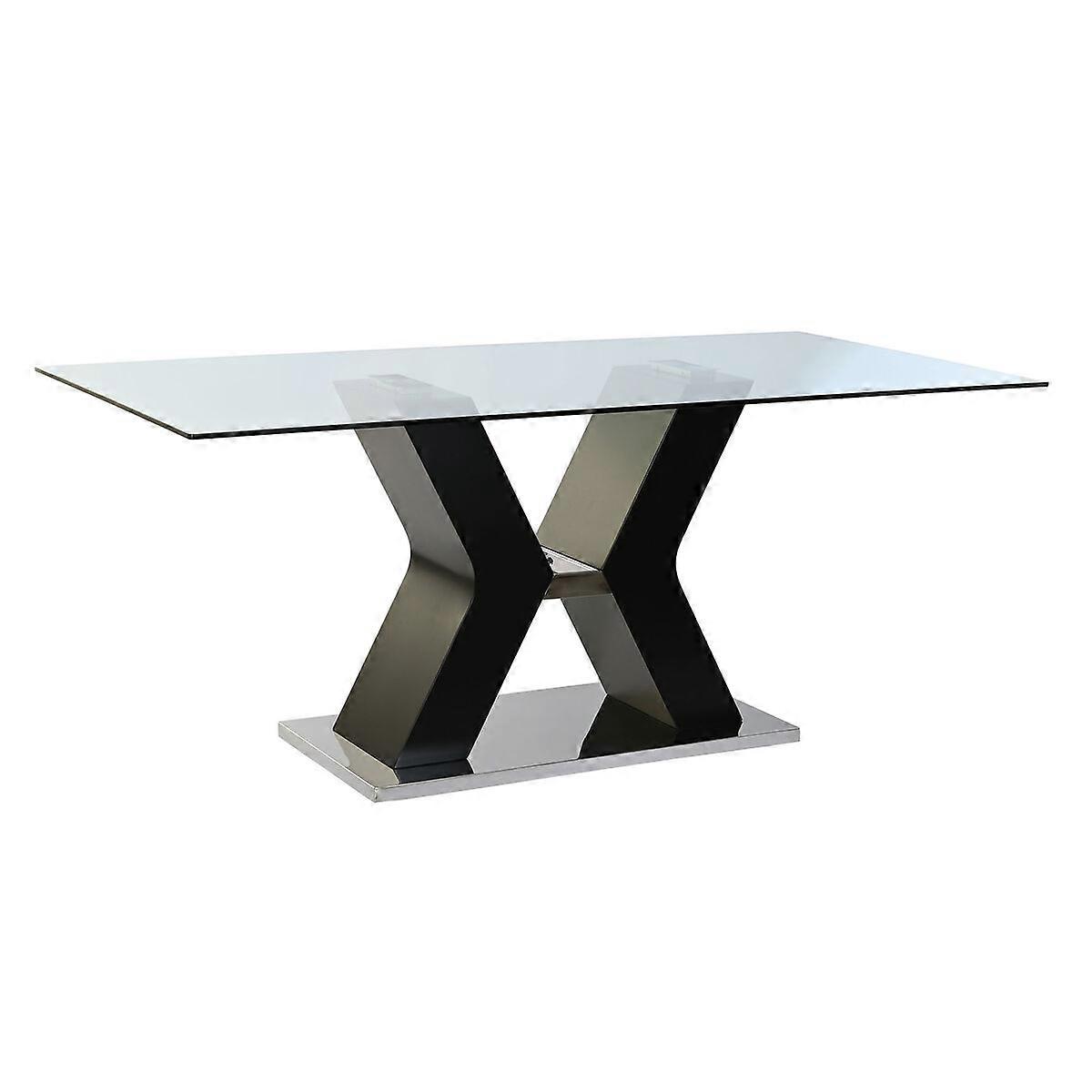 Dining Table DKD Home Decor Black Wood Tempered Glass MDF Wood 180 x 90 x 76 cm