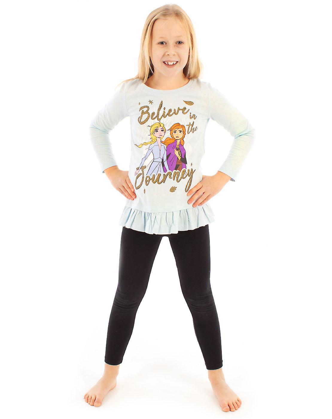 Disney Girls Long Sleeved T-Shirt Blue Elsa, Anna