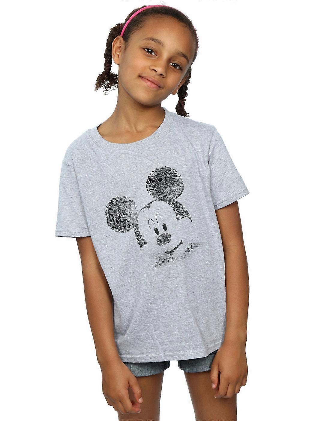 Disney Girls Mickey Mouse Text Face T-Shirt