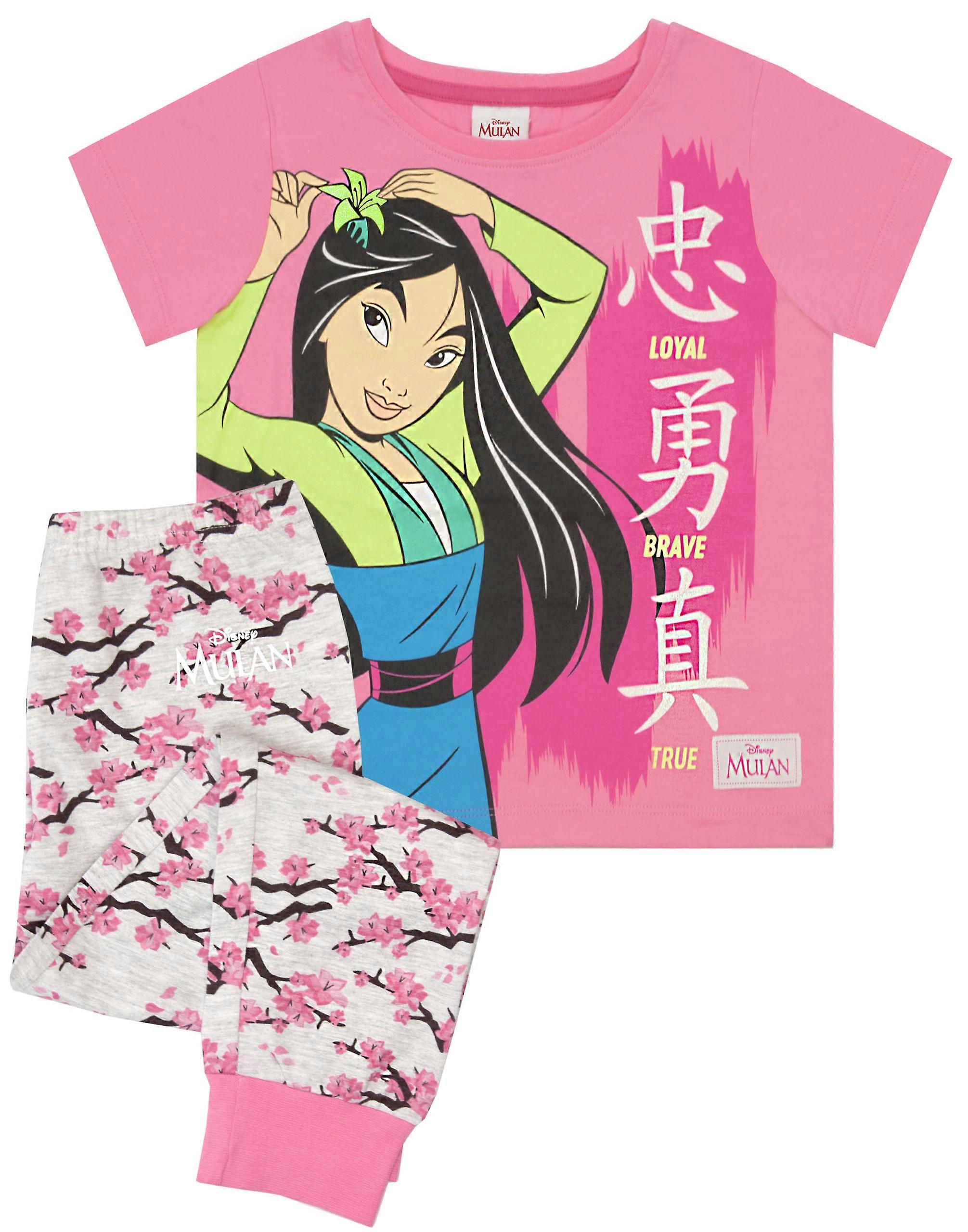 Disney Girls Short Sleeve Long Leg Pyjama Set Pink Mulan