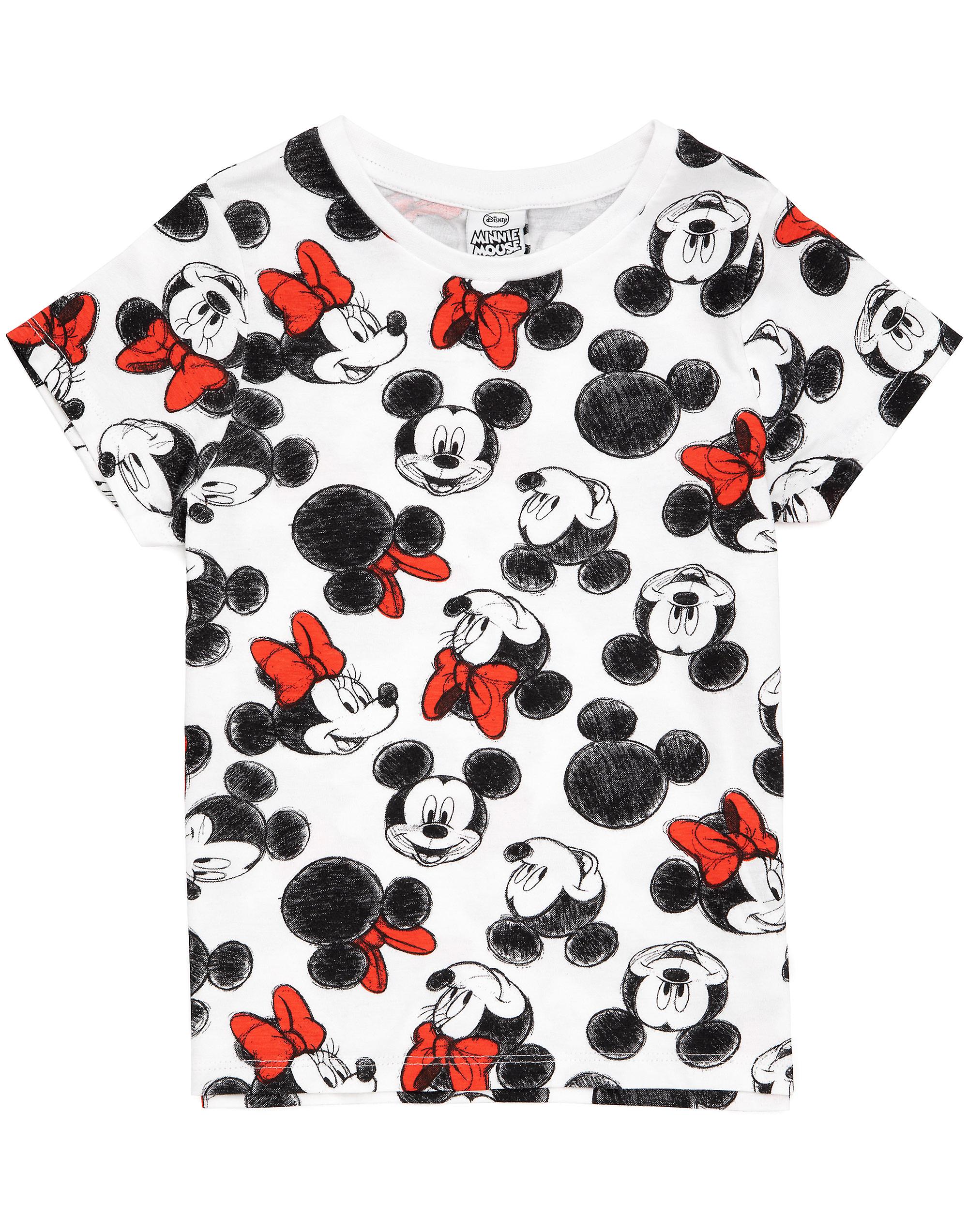 Disney Girls Short Sleeved T-Shirt White Mickey Mouse, Minnie Mouse