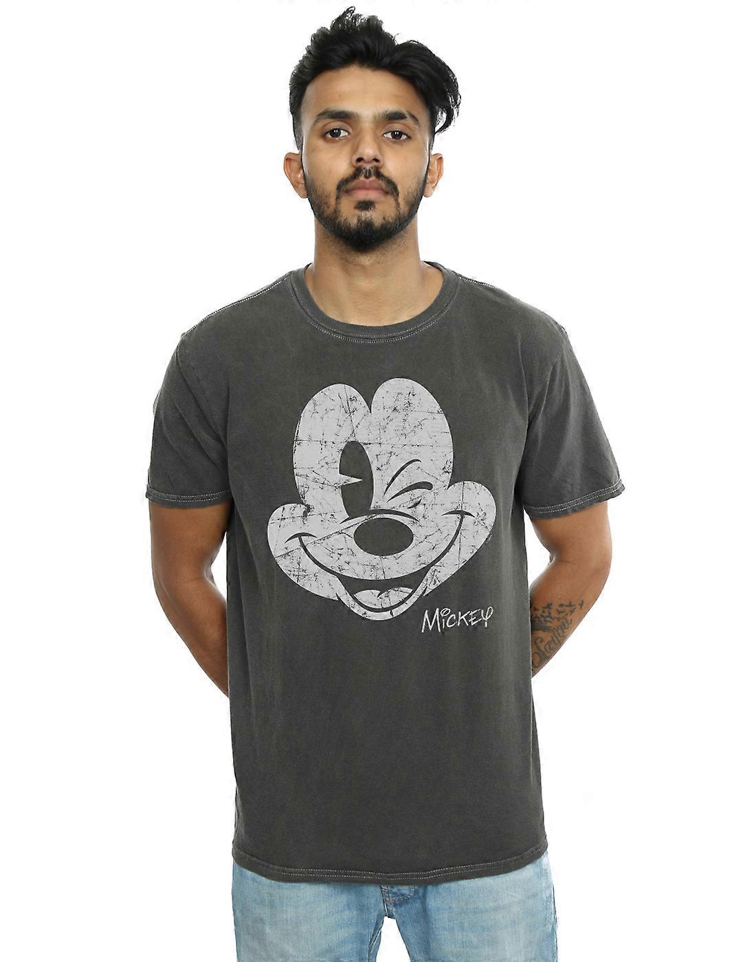 Disney Men's Mickey Mouse Distressed Face Washed T-Shirt