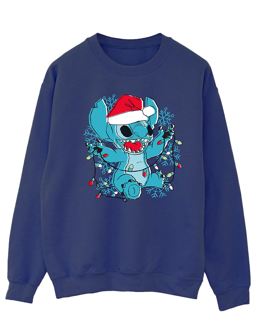 Disney Women's Lilo And Stitch Christmas Lights Sketch Sweatshirt