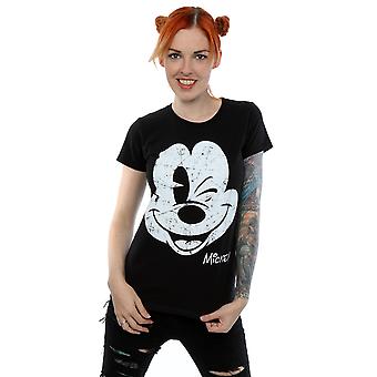 Disney Women's Mickey Mouse Distressed Face T-Shirt