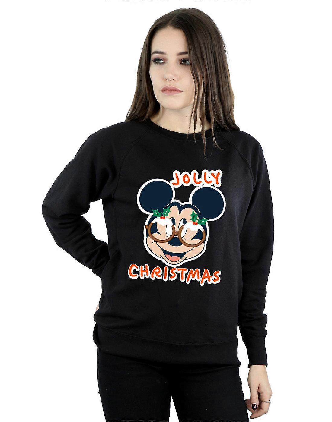 Disney Women's Mickey Mouse Jolly Christmas Glasses Sweatshirt