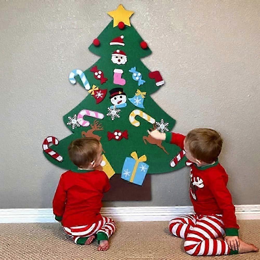 BOOST FRIENDSHIP WITH YOUR KIDS: DIY this Christmas tree could enhance the relationship between you and your kids^ GREAT NEW YEAR CHRISTMAS DECOR: W*H: 70*83cm(27.56*32.68in) This felt Christmas tree can be easily hung on any surface, perfect for kids to reach and play.^ MORE FUN IN DIY: 3.2ft DIY Christmas Tree has 26Pcs Xmas ornaments.^ CONVENIENT: DIY accessories are all with magic sticker that you could quickly stick them to the felt tree^ PERFECT GIFT: DIY Christmas tree can cultivate your kids manipulating ability, imagination, and creativeness during their play^