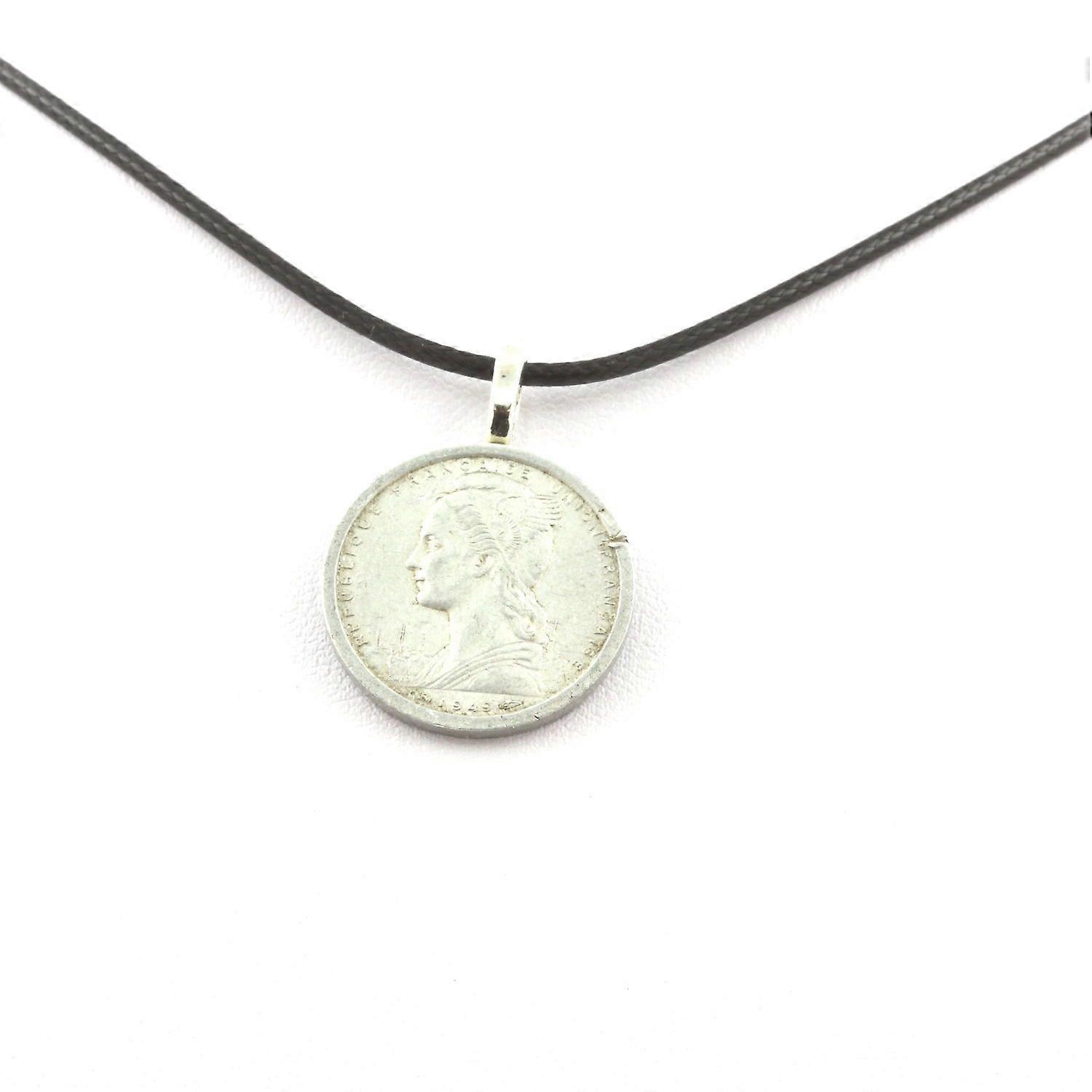 Djibouti coin necklace, ۼ French coast of Somalis 1 franc