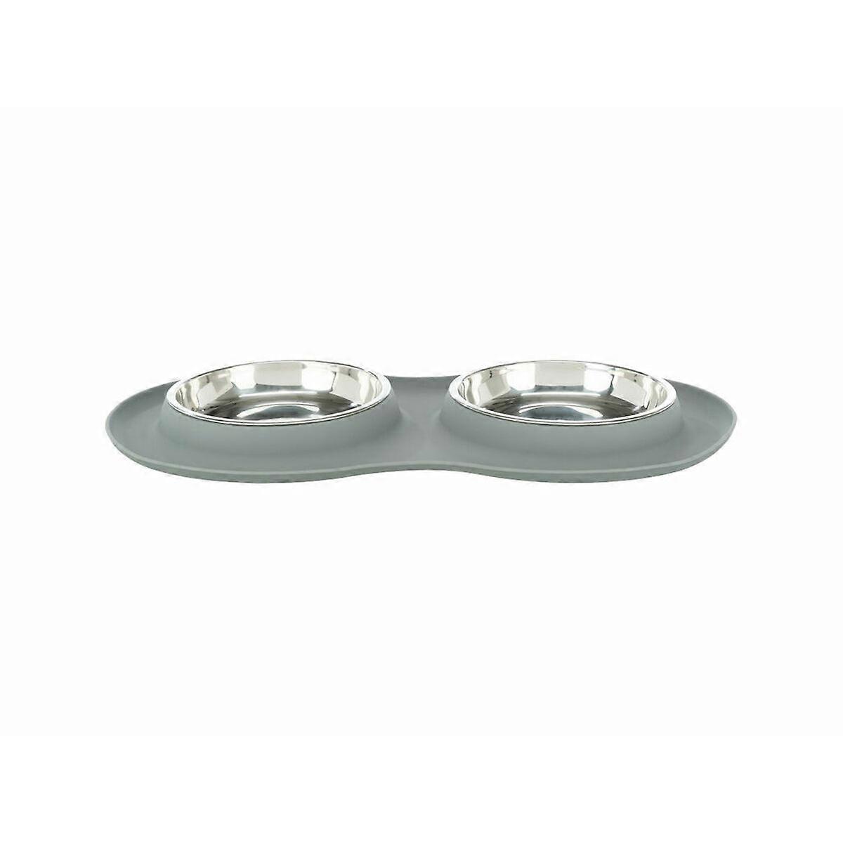 Dog Feeder Trixie Grey Stainless steel Ø 16 cm Double 2 × 0,3 L 47 × 3 × 26 CM