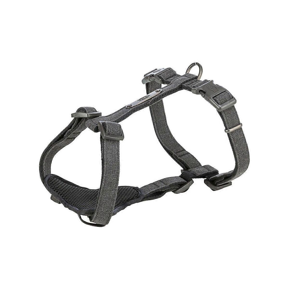 we present the Dog Harness Trixie CityStyle Arnés Black M/L The CityStyle Dog Harness by Trixie is an accessory designed to provide comfort and functionality during walks. Made from 100% cotton canvas and equipped with polycotton flat webbing, it stands out for its soft feel and durability, ensuring the pet’s well-being. Its design includes padding in the chest area that adds extra comfort and protection, preventing the straps from causing discomfort or irritation. Additionally, the straps adjustable around the chest, neck, and abdomen are fully adjustable, allowing it to fit dogs of different sizes, available in sizes M and L, facilitating a precise fit for greater safety and control. This harness, presented in black, combines functionality and practicality in a product made for the dog’s daily comfort. Due to its composition and design, balancing durability and comfort, it is a suitable option for those seeking a harness that offers a custom fit without sacrificing comfort. With these features, the CityStyle Harness by Trixie stands as a safe and comfortable choice for everyday dog walks. Type: Dog HarnessPet: DogColour: BlackMaterial: CottonCharacteristics: AdjustablePaddedSize: M/LAbdominal perimeter: 52-75 cm