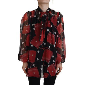 Dolce & Gabbana Black Red Sicily Bag Silk Shirt Top Blouse