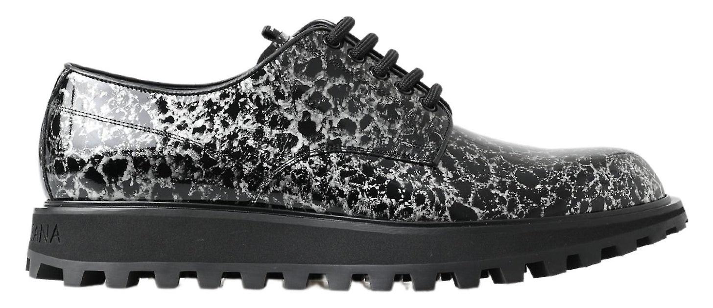Dolce & Gabbana Black White Derby Patent Leather Shoes