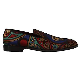 Dolce & Gabbana Multicolor Jacquard Crown Slippers Loafers Shoes