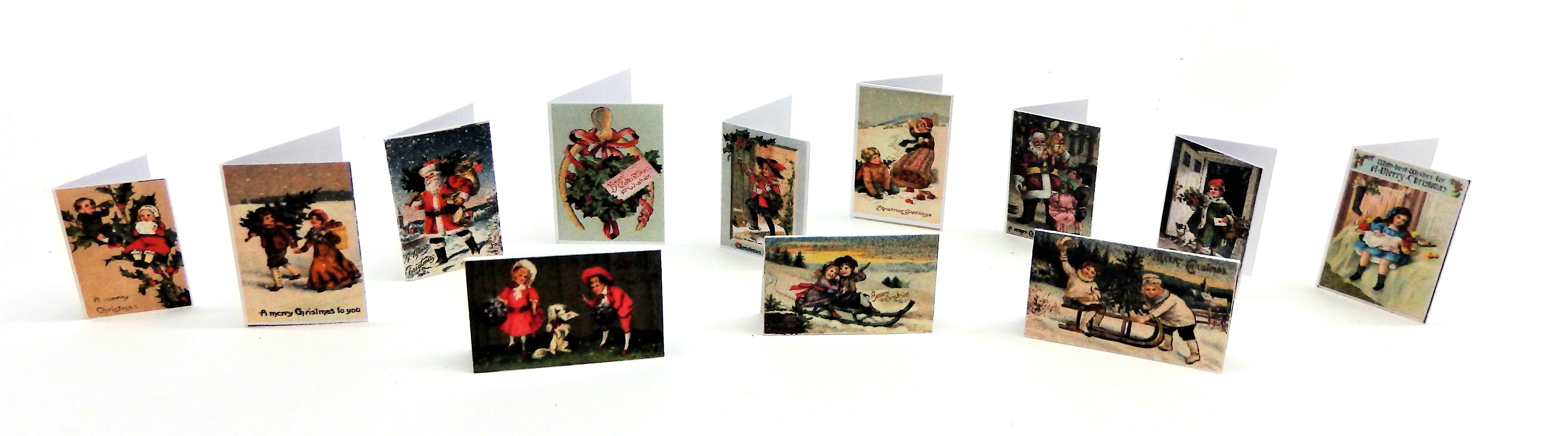 Dolls House 12 Traditional Christmas Cards Miniature 1:12 Decoration Accessory
