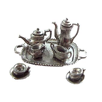 Dolls House 1:24 Scale Miniature Dining Room Accessory Pewter Silver Tea Set