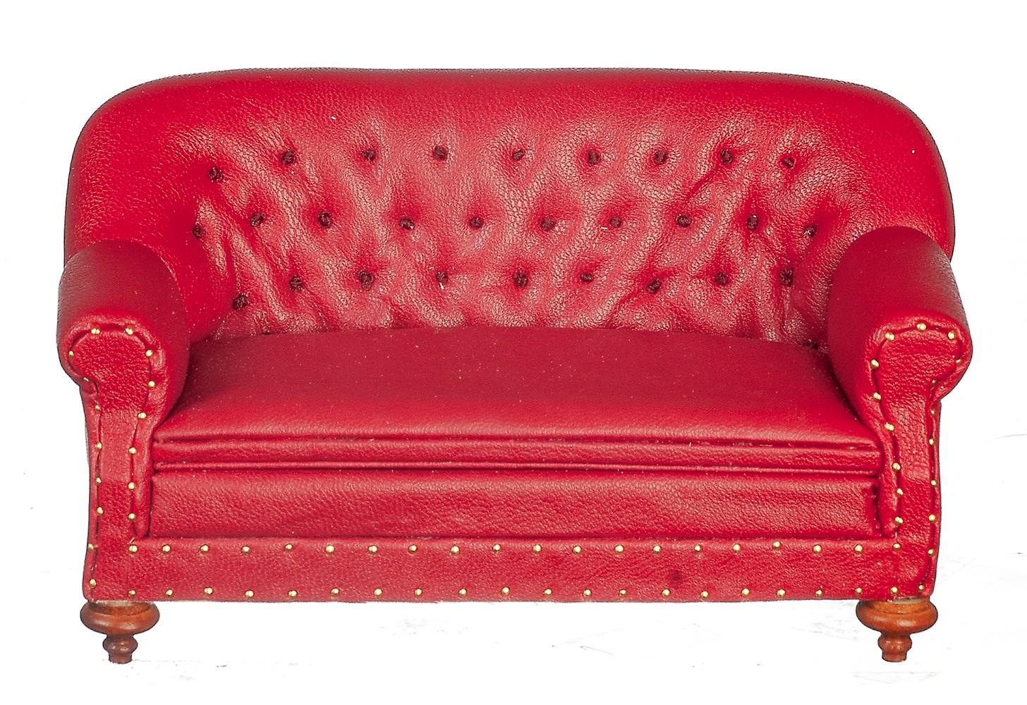 Dolls House 1880 Red Leather Club Sofa Jbm Miniature Living Room Furniture 1:12