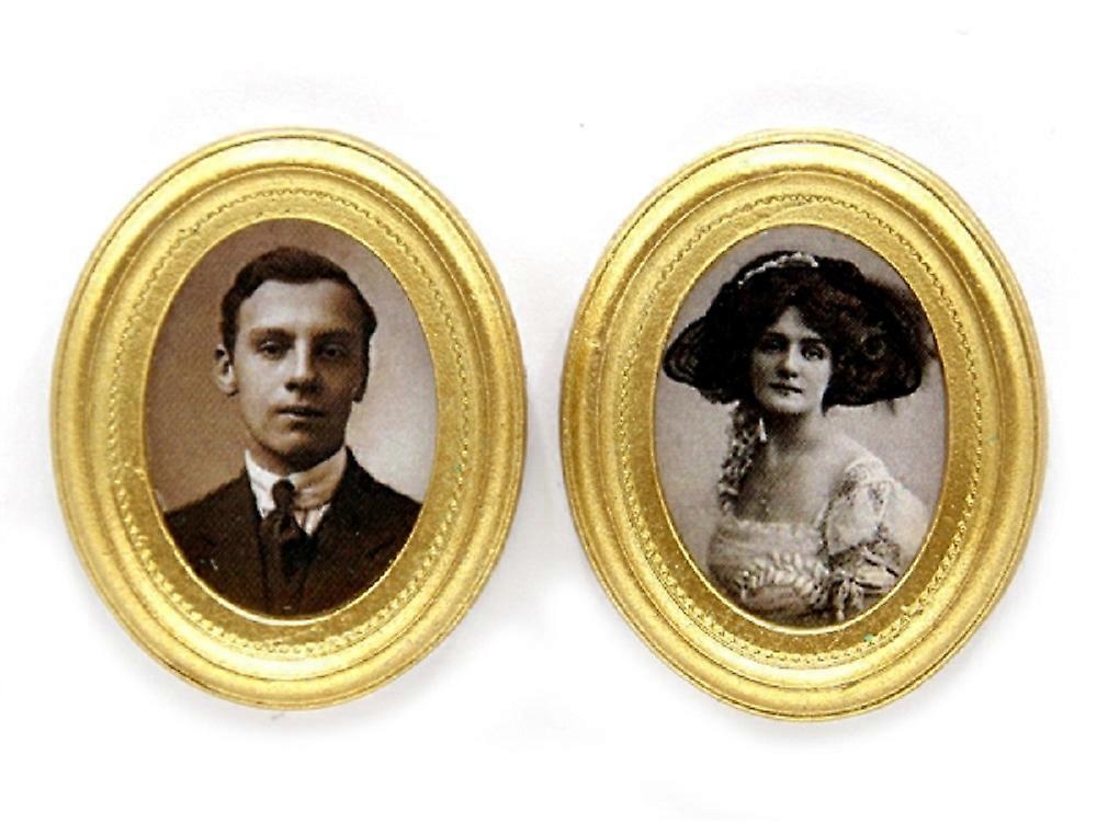 Dolls House 2 Edwardian Portrait Pictures In Gold Frames Miniature Accessory