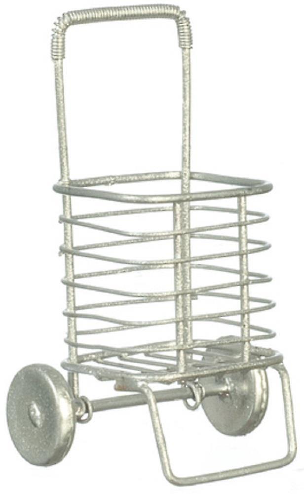 Dolls House 2 Wheel Shopping Trolley Silver Pull Cart Miniature Shop Accessory