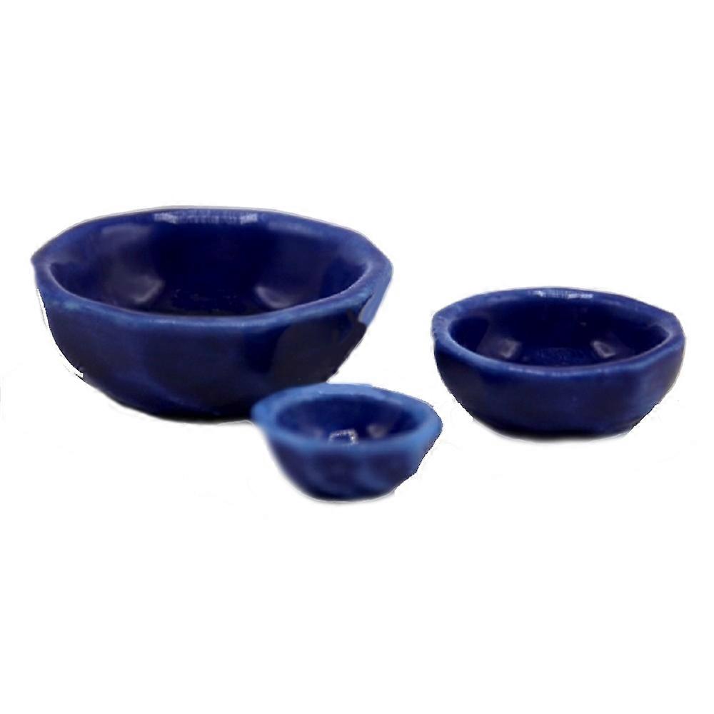 Dolls House 3 Blue Nesting Bowls Dishes Miniature Dining Room Accessory Set 1:12