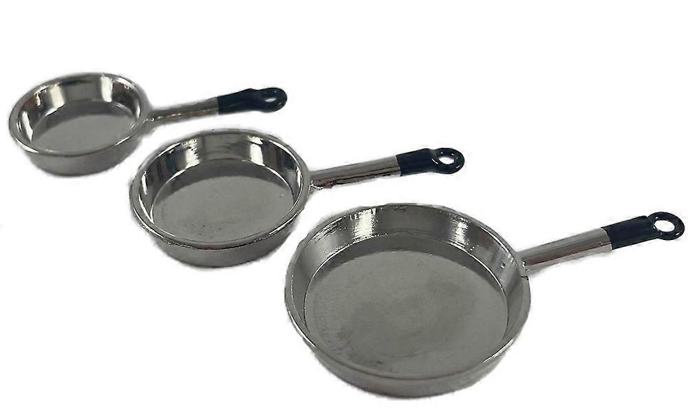 Dolls House 3 Silver Skillet Frying Pans Miniature Kitchen Cooking Accessory 1:12