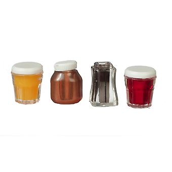 Dolls House 4 Coffee Jam Spread Jars Miniature 1:12 Kitchen Shop Store Accessory