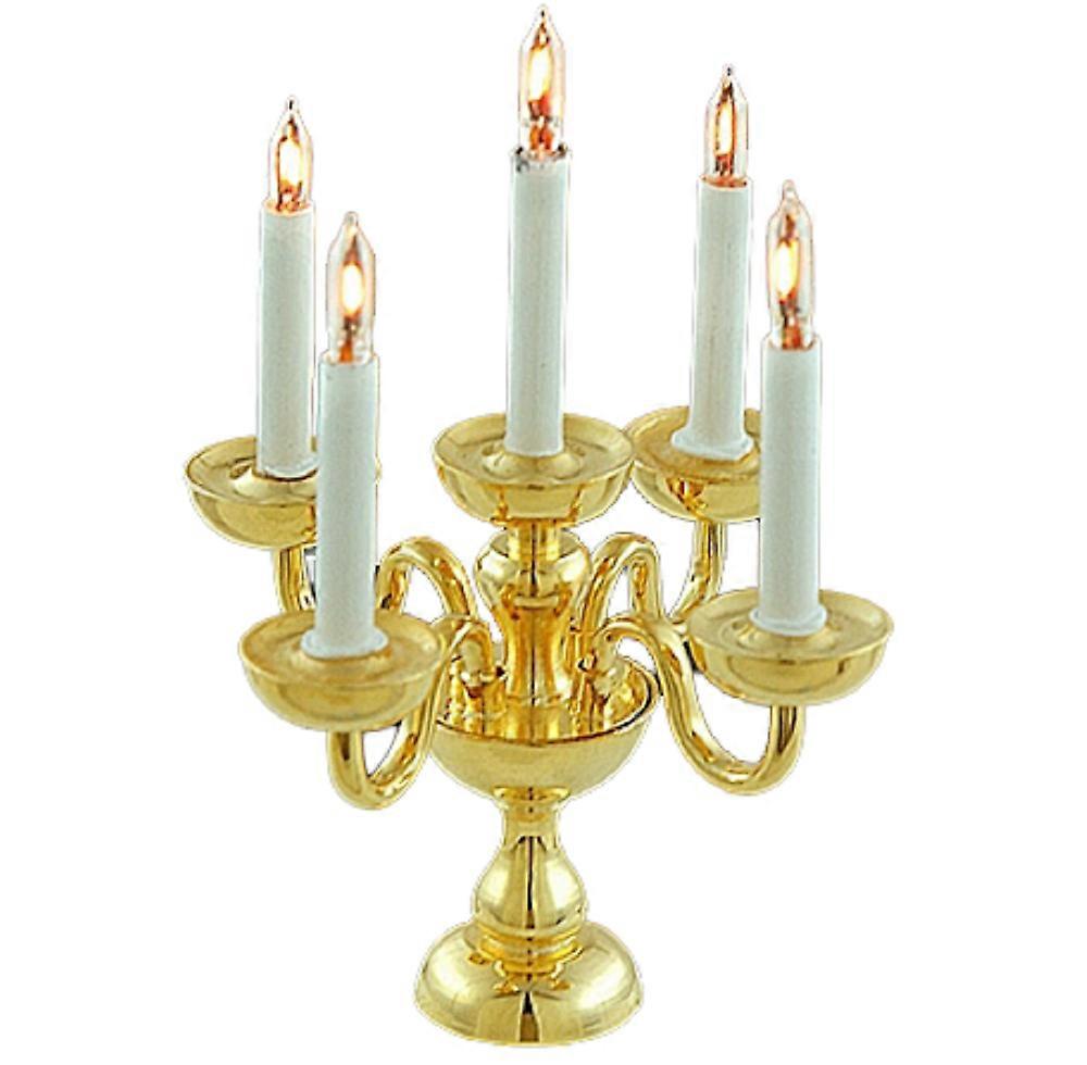 Dolls House 5 Arm Candlestick Gold Candelabra Table Lamp 12v Electric Lighting
