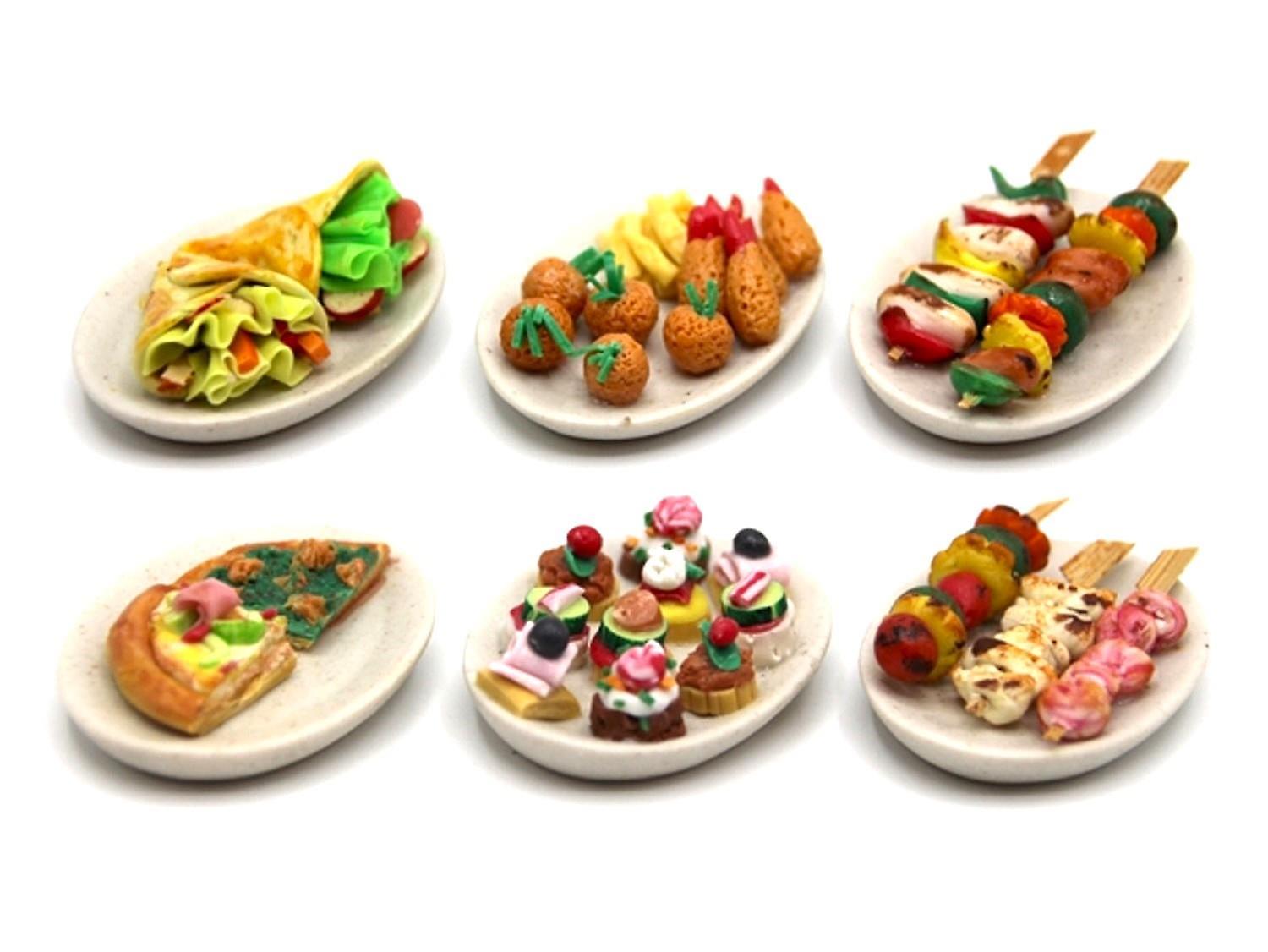 Dolls House 6 Plates Of Cooked Food Buffet Snacks Prepared Dining Room Accessory