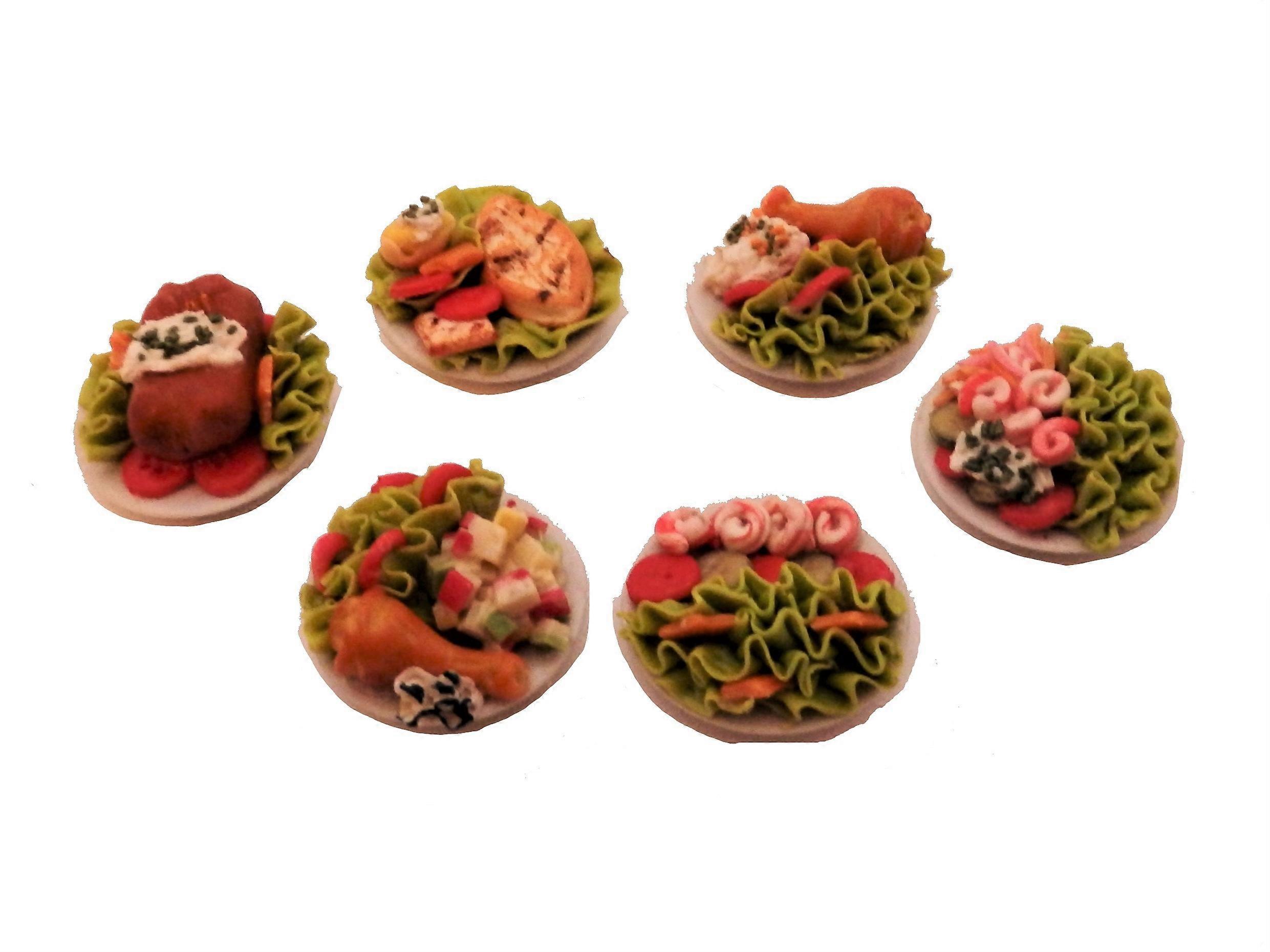 Dolls House 6 Salad Meals Dinner On Plates Dining Room Accessory