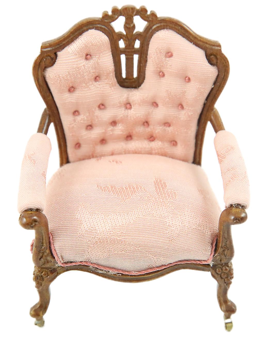 Dolls House American Pink Victorian Armchair Jbm Walnut Living Room Furniture