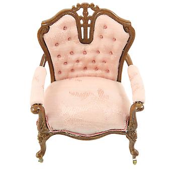 Dolls House American Pink Victorian Armchair Jbm Walnut Living Room Furniture