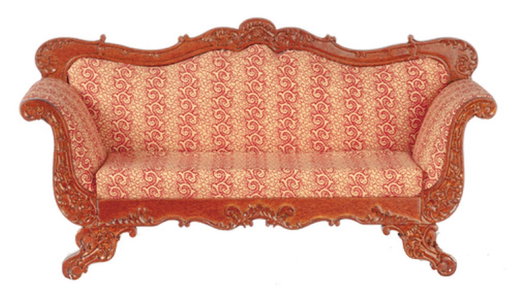 Dolls House American Sofa Walnut Red Jbm Miniature Living Room Furniture