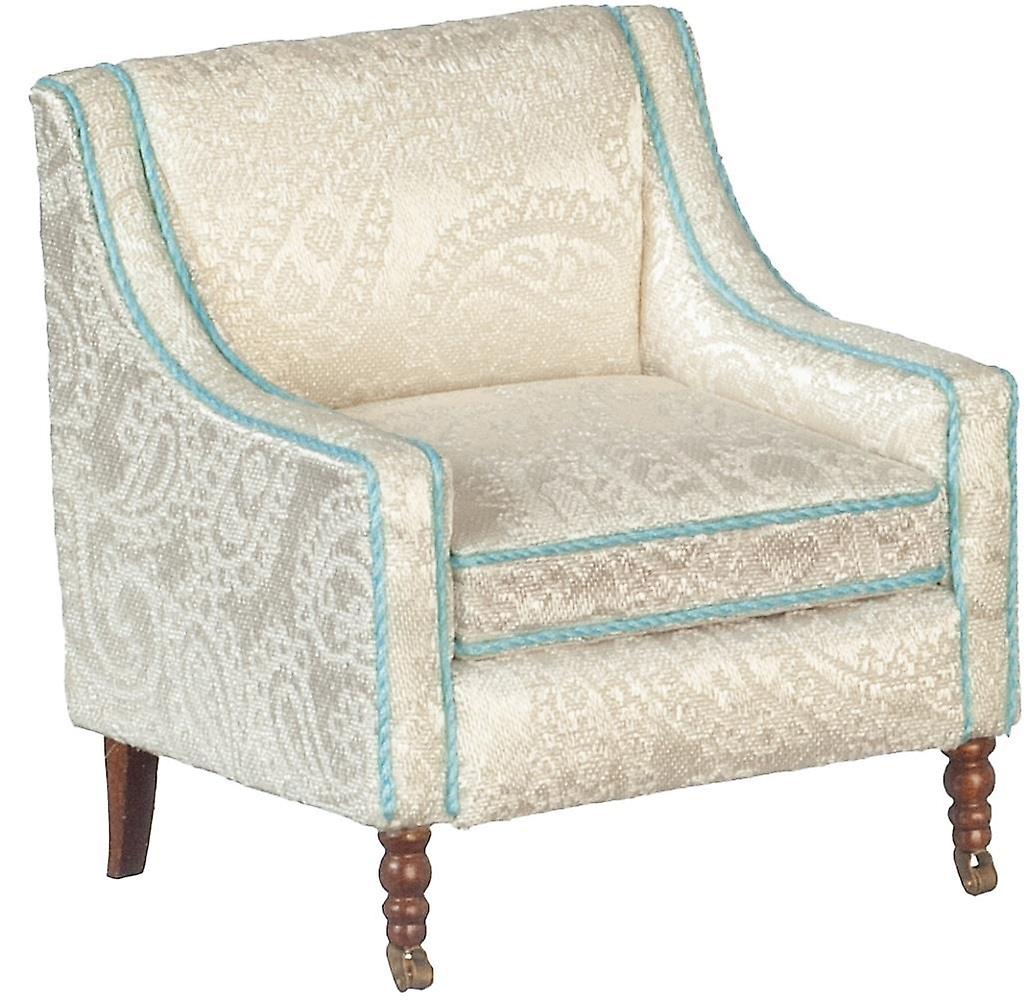 Dolls House Armchair White Fireside Chair Walnut Wood Jbm Living Room Furniture